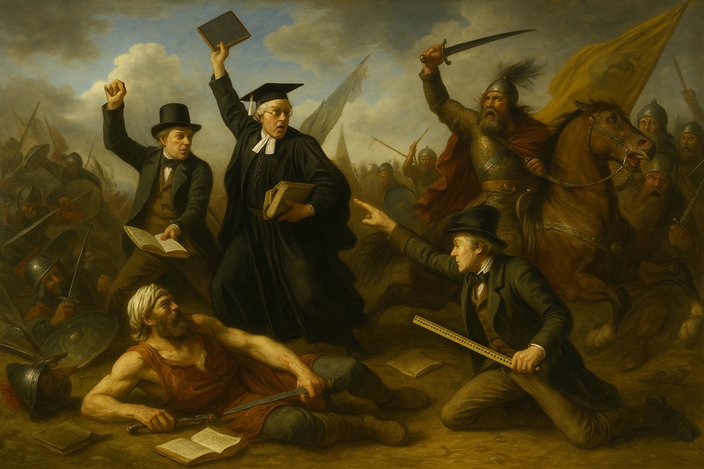 És akkor jött a híres-hírhedt muhi csata. A magyar sereg megkísérelte feltartóztatni a tanári hadat, de hiába. A mi vitézeink karddal és lándzsával álltak ki, a tanárok viszont pergőtűzszerűen zúdították rájuk a kötelező olvasmányokat. Arany János balladái úgy hullottak, mint a záporeső, amit elementáris erejű frontális oktatás követett. A haza védői közül sokan az első sorban estek el – nem fegyver által, hanem mert képtelenek voltak fejből elszavalni az Toldi első három versszakát. A csata végére a magyar táborban nem maradt más, csak lemásolt jegyzetek, elázott füzetek, és egy csomó síró katona, akit a tanárok feleltetésre szólítottak.